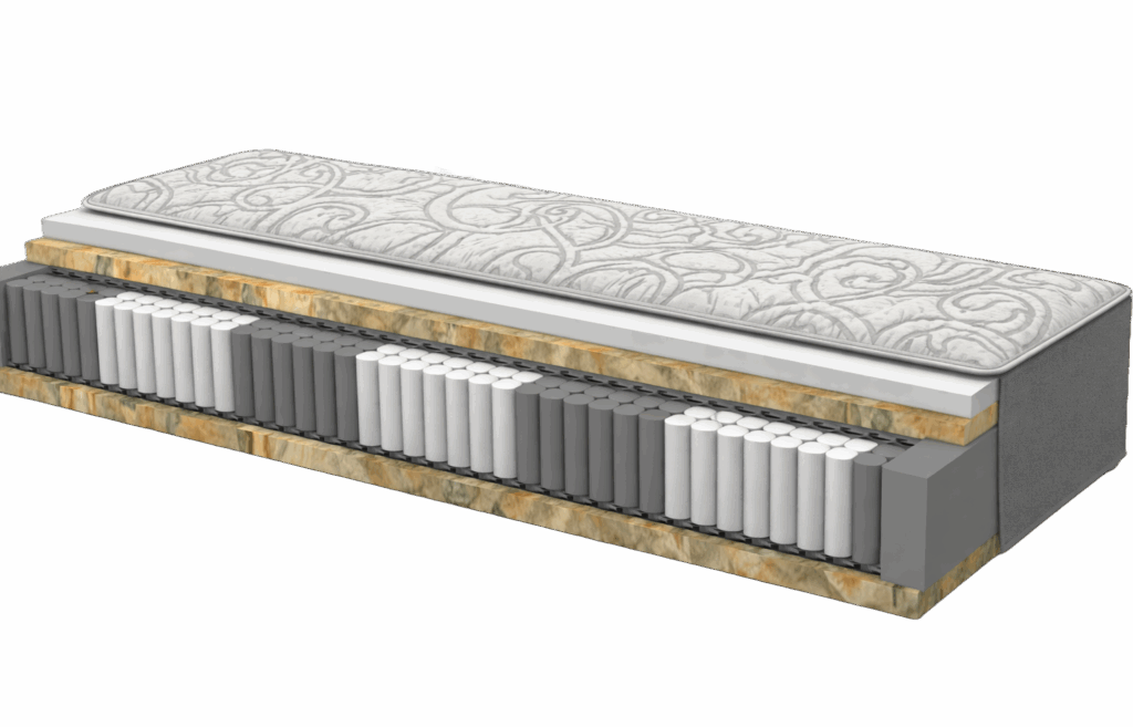 Połączenie sprężyn kieszeniowych z warstwą pianki sprawia, że materac reaguje punktowo na nacisk. Każda sprężyna pracuje niezależnie, co umożliwia prawidłowe podparcie kręgosłupa w każdej pozycji snu – na plecach, boku i brzuchu.